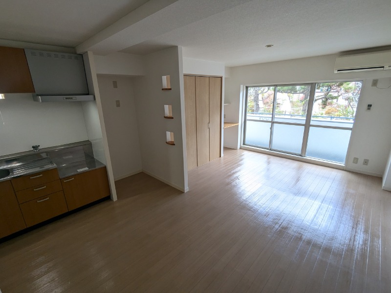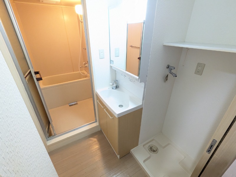 | 部屋の特徴 | ガス(都市ガス)、管理形態(巡回)、インターホン(TVモニター付き)、防犯カメラ、駐輪場、フローリング、ベランダ・バルコニー、クローゼット、クローゼット数(2)、下駄箱、バス・トイレ別(別室)、シャワー、脱衣所、洗面台、洗面所独立、シャンプードレッサー、洗濯機置き場(室内)、コンロ設置可、エアコン |